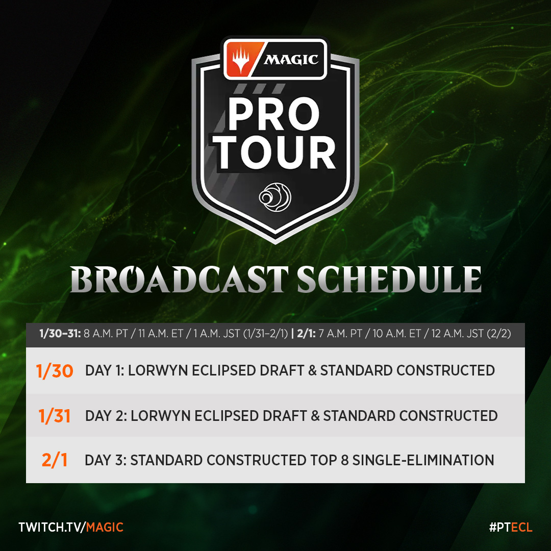 1月30日(金)の第4ラウンド開始時に「プロツアー『ローウィンの昏明』」公式イベントページにてスタンダードのデッキリストを公開予定です(日本語翻訳版デッキリストも追って公開予定です)。『ローウィンの昏明』ドラフトのデッキリストの公開はされません。