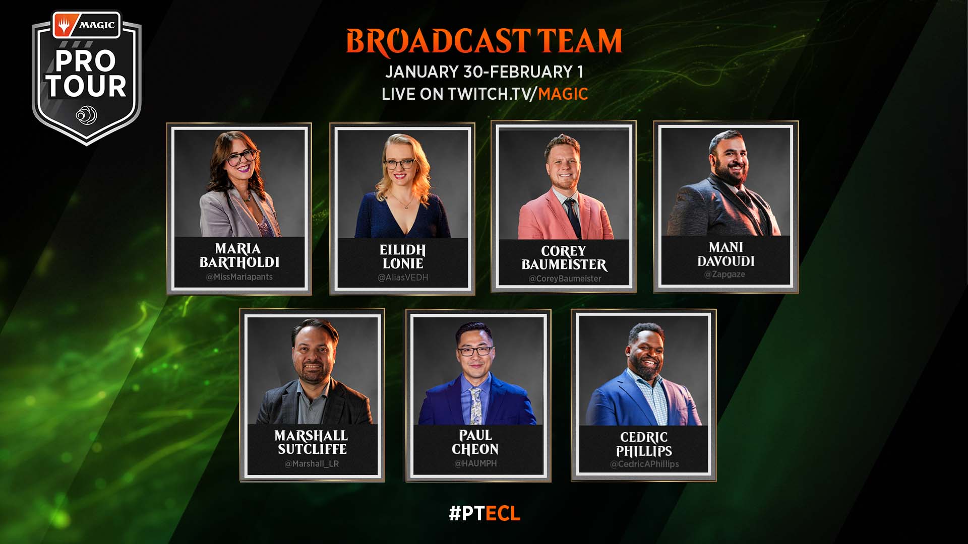 週末をとおして、彼らが『ローウィンの昏明』リミテッドとスタンダード構築の模様を余すところなくお届けします。いつものマリア・バルトルディ/Maria Bartholdi、エイリー・ロニー/Eilidh Lonie、コーリー・バウマイスター/Corey Baumeister、マニ・ダヴォーディ/Mani Davoudi、マーシャル・サトクリフ/Marshall Sutcliffe、ポール・チェオン/Paul Cheon、セドリック・フィリップス/Cedric Phillipsと共に、熱い『マジック』の週末を駆け抜けましょう。ドラフトからスタンダードまで、このチームが決勝戦を含めて、すべてのアクションを解説していきます。Magic.gg上で各日ごとにイベントの振り返りもお届けしますので、さまざまな形でお楽しみいただけます!