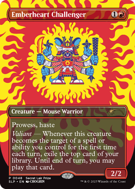 地域チャンピオンシップでマジック屈指の強豪たちと戦うことは、挑戦者にとってふさわしい試練です。その燃えるような競技精神を、このプロモカードに刻みました。このラウンドの地域チャンピオンシップ参加者全員に、CHOGRINが描いた非フォイル仕様の《熾火心の挑戦者》プロモカードを配布します。上位入賞者には、伝統的フォイル仕様のプロモカードを進呈します。*