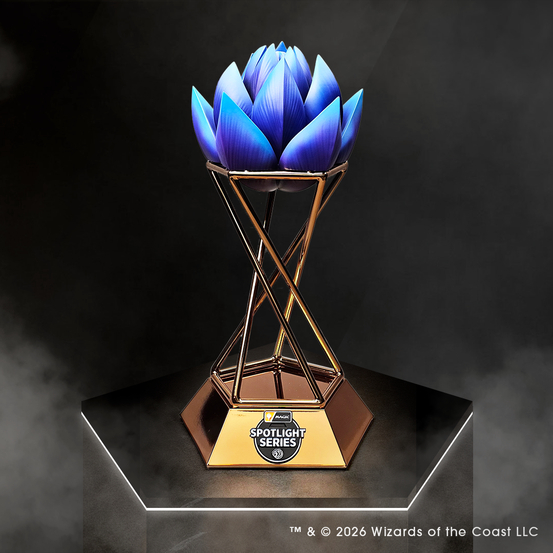 プロツアーへの参加権利と1万ドルの賞金に加え、「マジック・スポットライト:エクリプスド」の優勝者は、勝利を記念する見事な新トロフィーも受け取ります。そこには、『マジック』の《Black Lotus》が開花し始めた様子が描かれています。
