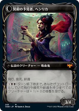 夜が長くなる中、オリヴィアはイニストラードの権力を手にし、同時にソリンへと美味な復讐を行う好機と判断した。エドガー・マルコフを蘇らせて壮麗な婚礼を執り行い、自らの権力を確固たるものにする。エドガーはイニストラードの全吸血鬼の始祖であり、加えてソリンの祖父でもある。あのおせっかいなプレインズウォーカーたちが昼と夜の均衡を修復しようとしているが、それを止める方法さえあれば……