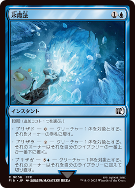 どのモードで唱えても、その呪文のマナ総量は変わりません。呪文のマナ総量は追加で支払ったコストは含めず、マナ・コストのみで決まります。つまり、《氷魔法》のマナ総量は常に2なのです。さらに、呪文の名前も常に《氷魔法》です。3つの段階にはそれぞれフレイバー語がついていますが、あくまでフレイバーなのでゲーム上のルールには影響しません。