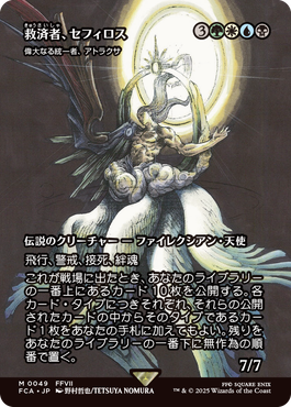 「FINAL FANTASY・アーティスト」ボーダーレス版は、神話レア7種類とレア3種類の合計10種類です。これらは非フォイル仕様/フォイル仕様ともにプレイ・ブースターやコレクター・ブースターで手に入ります。