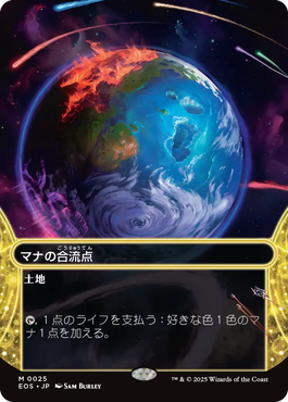 プレイ・ブースターからは、非フォイル仕様の「天体」ボーダーレス版基本土地が出現します。コレクター・ブースターからは、フォイル仕様やギャラクシー・フォイル仕様の「天体」ボーダーレス版基本土地が出現します。