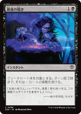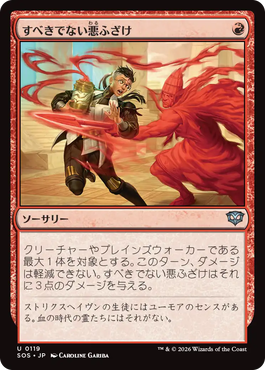 ただし対戦相手もまた、除去呪文をしっかり搭載していることをお忘れなく。以下に、『ストリクスヘイヴンの秘密』の主要な除去呪文を掲載します。プレリリースではデッキ構築中でもゲーム中でも参照できますので、対戦相手のデッキに入っている除去を予測してみましょう。対戦相手がプリズマリなら、《白熱した口論》が入っているかもしれませんね。
