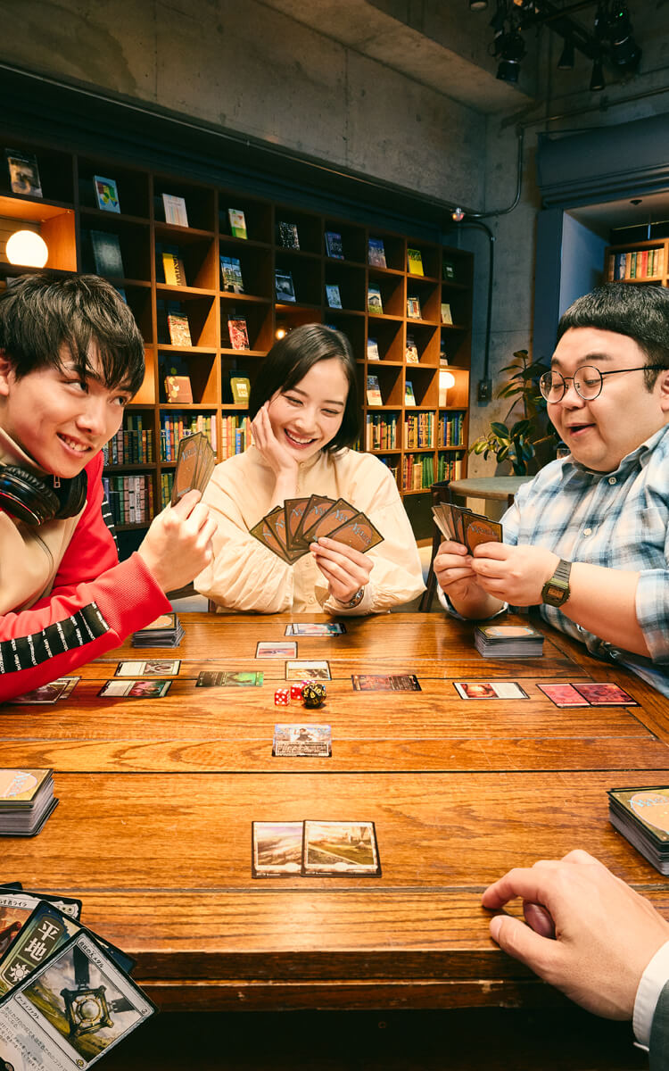 友達やお店でテーブルを囲み、会話を楽しみながらゲームが進んでいきます。